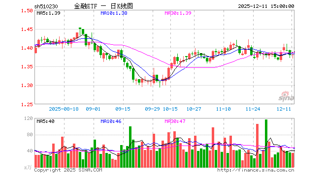 12月11日,金融ETF(510230)涨0.15%,成交额4687.78万元。当日份额减少700.00万份,最新份额为33.54亿份,近20个交易日份额减少1.14亿份。最新资产净值计算值为46.24亿元。